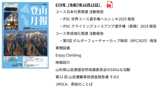 ☆ JMSCAでは、登山月報の送付を取りやめることになりました。山形県岳連では送付の申し込みはしませんので、必要な方はダウンロードをしてください。
