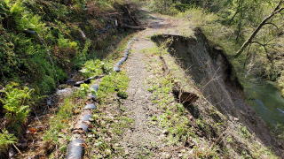 彫刻公園からしばらく進んだ所(大橋との中間付近)の林道崩壊が顕著になっており、さらに崩壊が進行する恐れがあります。なお関川村から東俣林道は徒歩を含めて通行禁止の連絡がきています。 ・・・2025年5月3日