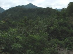 さらに下ると男性1人が休んでいた。11:51岩場、12:12姫子ノ峰を通過し、12:37-55車道に出る。待っていてくれた長谷川さんから冷たいトマトと葡萄を頂く。13:04奥胎内着。