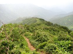 立ち上がり登り始めた。夕方のように暗くなると、いきなり横殴りの雨が叩きつけてきた。風はそれ程強いわけではないが、何しろ雨粒の大きさが尋常ではない。唖然としている間に、ズボンがびっしょりと濡れていく様子を記憶している。