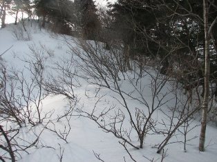 | 連鎖して雪崩となる | 自分が起こした雪崩が林道まで落ちていた |