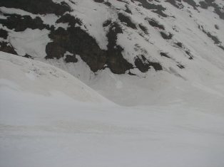 | ここから吹き付け | オフタガリのスノーブリッジは例年よりかなり小さい |