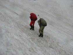 | 雪の厚さを確認 | 夏道に登る | 結構大変 |
