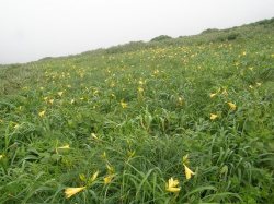 ナナカマド・ハクサンシャクナゲ・ミヤマダイコンソウ(終)・オノエラン(盛)・チシマギキョウ・ヨツバシオガマ・マルバシモツケ・イイデリンドウ・ニッコウキスゲ(盛)が咲いている。特にニッコウキスゲは圧巻である。