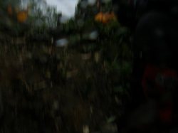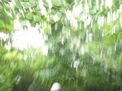 | ヘリの風圧で枝が激しく揺れる | 防災ヘリもがみが現れた | 落葉や木の枝がカメラを直撃する |