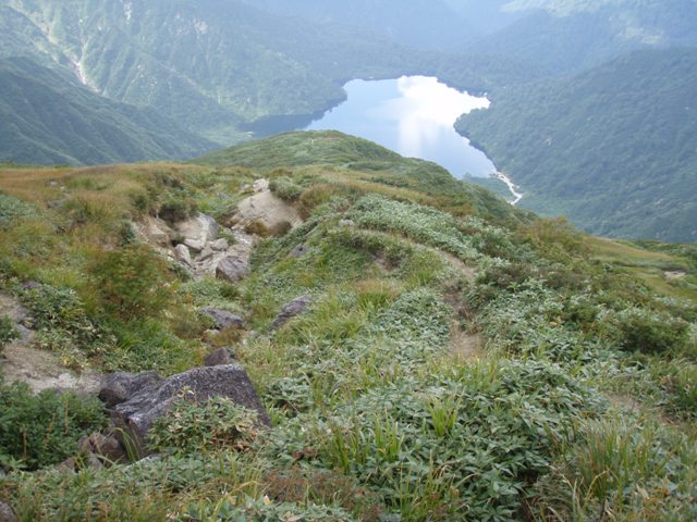 | 大鳥池と荒れた登山道 |