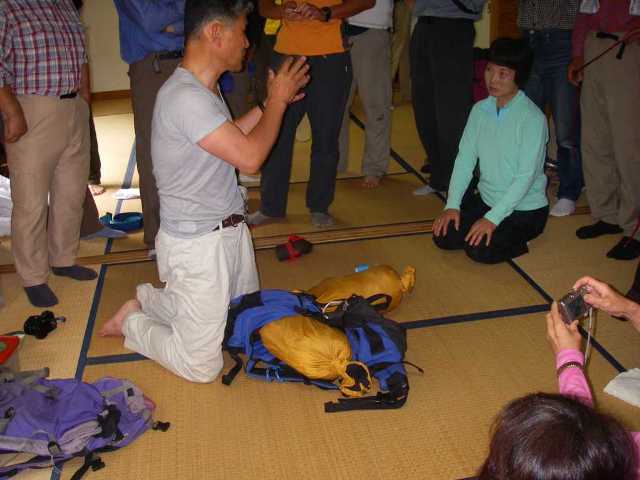| 最後に「搬送に使用したザックの中身を、カッパ下を袋にして他のザックで運ぶ方法」を勉強しました |