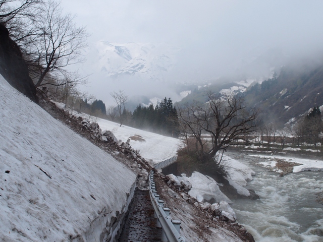| 梅花皮荘対岸の雪崩はまだ終わっていない |