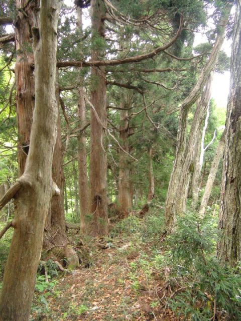 | 俎倉〜岩岳間杉とブナなどの混合林の中を行く |