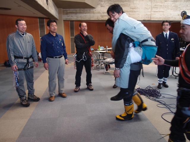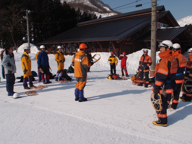 消防小国分署・小国警察署・飯豊朝日山岳遭難対策委員会救助隊が合同して、横根スキー場等で救助訓練が行われた。1部は雪崩救助、2部はロープワーク、3部は山形県警本部や県警航空隊からも参加いただき、遭難発生時の対応に係る作業手順の確認と意見交換が行われた。特に意見交換では、過去の数々の事案を踏まえて、具体的な場面におけるそれぞれの課題が真剣に話し合われた。