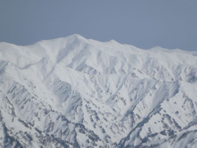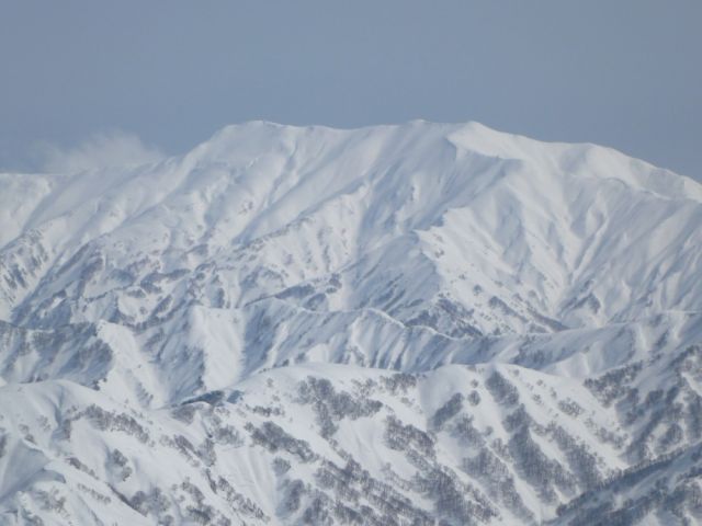 12:35山頂。飯豊は、大日に雲が掛かっているが綺麗に見えている。天気が悪いつもりで、いつものカメラでなく、防水仕様のデジカメしか持ってこなかったのが少し残念であるが、写真を撮って小屋に入り休憩を取る。小屋の温度計は、氷点下3度であるが暖かく感じる。お湯を沸かして温かい食べ物を食べる。その間、誰も登ってこなかった。休憩を終えて外に出ると更に天気が良くなり、大日の雲もとれている。飯豊の写真を撮り直す。