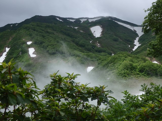 09:24御沢分れ、09:43-49カッパを着る。09:57「素敵な水場」は雪で覆われており汲めない。雪渓を横断するがピッケルは不要。水の音がするので薄くなっているようだ。イワカガミ・チングルマ・イワイチョウ・ニッコウキスゲ・ガクウラジロヨウラク・ゴゼンタチバナ・ヒメサユリが咲いている。