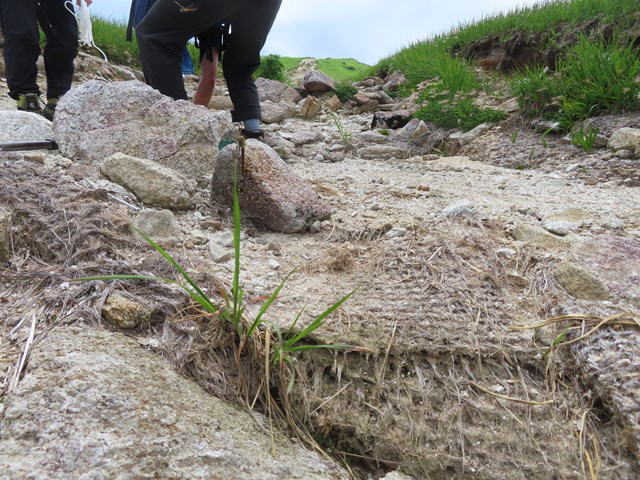 | これまでの 施工地の最上部、剥がれた植物がもったいない |