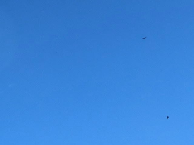 見上げると青空に猛禽類らしい鳥が飛んでいた。