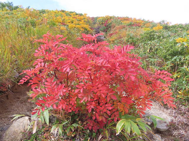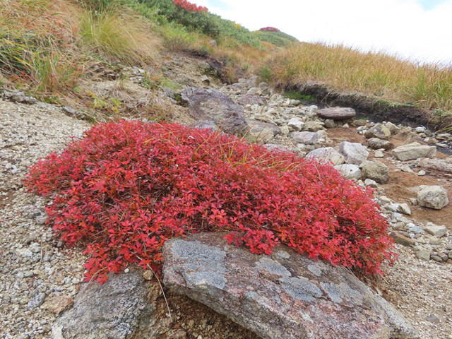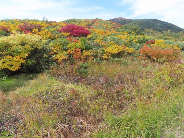 草紅葉と地神山 |