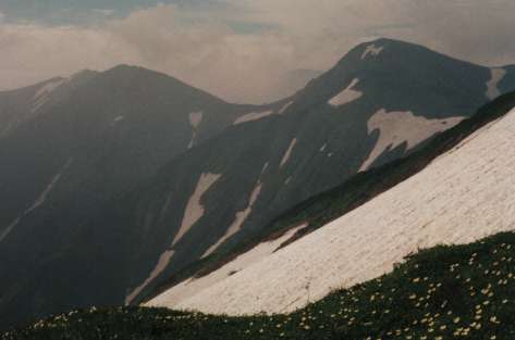 梅花皮小屋周辺の花畑:エゾイブキトラノオ(盛)ハクサンフウロミヤマアキノキリンソウミヤマシシウドタカネマツムシソウニッコウキスゲオンタデクロトウヒレン?タカネナデシコタカネツリガネニンジンオタカラコウ(盛)シラネニンジンヒナウスユキソウ(終)タカネサギソウミヤマクルマバナトモエシオガマヒメシャジンタカネヨモギヤマハハコイイデリンドウ(盛)マルバコゴメグサチシマギキョウ(終)イワオウギミヤマコウゾリナミヤマホツツジムカゴトラノオ