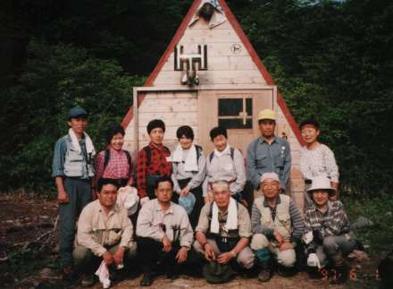 れていました。祝瓶山の分岐でB班(祝瓶山コース)と分かれ、先に進んで潜り橋に到着する。潜り橋では導管に詰まった流木が取り除かれてありました。それから先方にある大玉沢の吊橋も新たに整備されておりました。この作業には、昨日早朝から自然公園管理人齋藤初男さんと五味沢地区の方々が整備されたと聞きました。皆さんの支えがあっての安全登山と言えるでしょう。