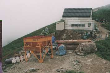 | 梅花皮小屋改築工事の様子(幕営スペースがないので注意) |