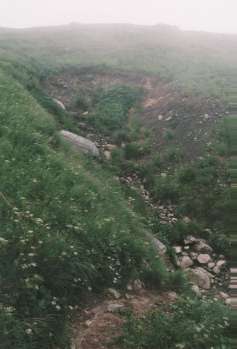 | ホン石転ビ沢出合対岸枝沢から下を見る |