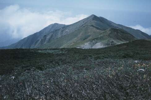 頂上に着いた時は快晴で、西大日岳も目の前に見えたし、梅花皮小屋に資材を運んでいるヘリコプターまで、肉眼で見えた。牛首方面に数メーター降りるとシャクナゲが群生していた春には見事な花を見ることが出来るだろう。