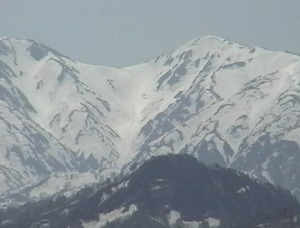 天候:晴れ。飯豊山荘を5:00山発、ツブテ石から雪渓に入るがツブテ付近の雪渓は崩壊寸前で要注意である。梶川出合の上部に3m位の大穴が開いている。石転ビノ出合の大岩は二つとも顔を出していない。ホン石転ビ沢の反対(左岸側)から昨日発生したと思われるブロック雪崩跡があった。中ノ島(草付キ)は雪渓で覆われている。梅花皮小屋まで雪渓が続いているので、アイゼン・ピッケルが必要である。