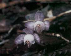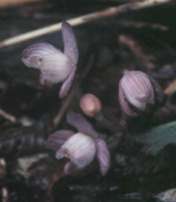 ピンクのギンリョウソウかと思える様な今まで見たことも無い物に出会った。しかし花の形が全く違う、まずザックを降ろしカメラを取り出し、今山行初めてシターを切った。(井上:ショウキランと思う)