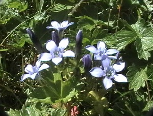 | イイデリンドウが盛りになっていた | 水場から梅花皮小屋と北股岳 |