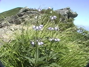 梅花皮小屋〜烏帽子岳:タカネナデシコ(盛)・クルマユリ・エゾイブキトラノオ・ニッコウキスゲ・ミヤマクルマバナ・タテヤマウツボグサ・ミヤマアキノキリンソウ(盛)・ハクサフウロ・ミヤマキンポウゲ・イイデリンドウ・コゴメグサ・マツムシソウ・タカネニガナ