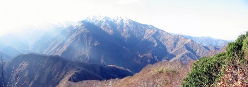 | 枯松山山頂の三角点 | 三角点と杁差岳 |