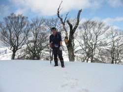 | 飯豊連峰を背景にKIK | 天神堂山に向かう |