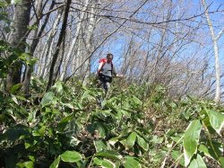 | 若いブナ林を進む | 浜風峰山頂部の平坦な登り |