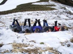 17日、4:00起床。窓の外を見ると昨日までの天候が嘘のように良く晴れている。皆で山頂へ向かう。飯豊本山はもちろんのこと二王子岳、越後の山々、佐渡島、粟島まで見える。ご来光を拝み、少し沈黙の時間を持った。どこへ行ってもいつも何かの音が聞こえる今の世の中、この沈黙の時間はとても貴重だと思う。小屋へ戻りゆっくりと朝食のサンドウィッチを食べる。少しゆっくりし過ぎて杁差小屋を出発したのは7:43。カモシカやウサギ、イタチ系の動物の足跡を見つけながら雪上を下山する。思ったより雪質は堅くなくアイゼンは必要なかったがピッケルは持って歩いた。8:15何やら大きな足跡を発見。熊の足跡である。それも新しい。足跡を追ってみると熊には出会えなかったがカモシカに出会えた。一休みして下山再開。11:08大熊小屋着。小屋直前のブナ林には雪が残っておりコンパスと地図を使って夏道を探し、大熊沢を渡り小屋へ向かった。11:30大熊小屋出発。ここからは西俣川に沿ってほとんど平坦な山道である。しかしあまりの長さに精神的に参ってしまう。雪崩後が道を塞いでいる箇所が幾つもありピッケルを使い慎重に歩く。足を滑らせればそのまま西俣川へ・・・という難所であったが、皆少しずつ慣れて難なく通過した。17:23やっとの事で多いしダム到着。この日は関川村の道の駅近くにテントを張った。100円では入れるお風呂に入り、さあ夕食の食材を買いに行こうというところで既にお店がしまっている事が判明。仕方なく唯一開いていた酒屋に行き食材がないか探す。麻婆豆腐の素と豆腐、カルビを見つけ夕食のメニューは決まった。さらに翌日の朝食と昼食の食材を2キロ先のコンビニへ買いに行った。そんな訳でシュラフに入ったのは0:00を過ぎていた。翌朝は7:30頃に起き、9:45小国へ向けて歩き出した。電車に乗ればいいものを何故か生徒は歩きたがるのである。17:40KDGに無事帰還という感じである。