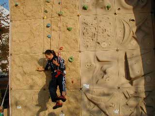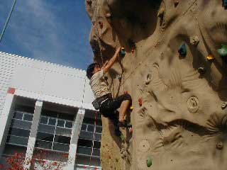 | 山岳連盟の指導員の方々の説明・注 意を聞きさあチャレンジ4のルートを作 りいろんな壁面に挑戦。 |
