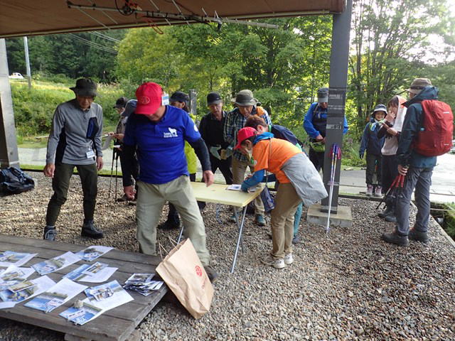 途中、寒河江山岳会の方から説明を頂く |
