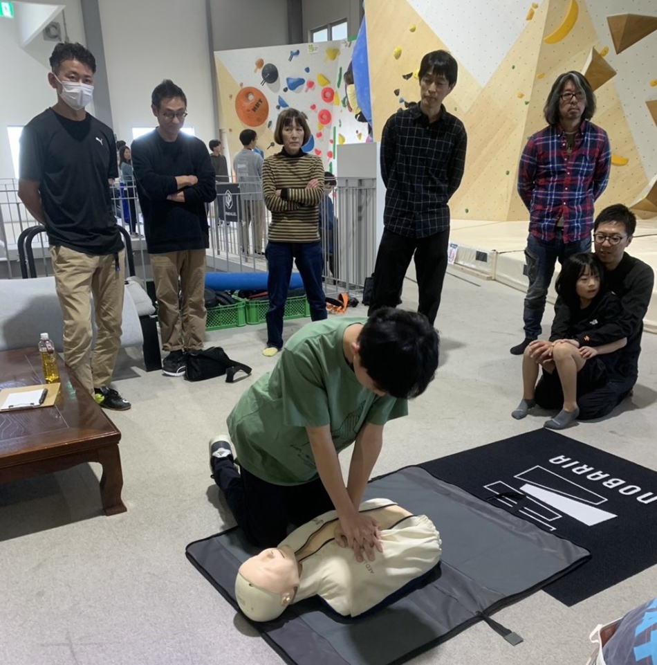 山形スポーツクライミング連絡会は、令和8年度の事業における安全と緊急に備え、ビレイ講習及びBLS(一次救命処置)を実施して一人ひとりが実践的な意識を身に付けました。