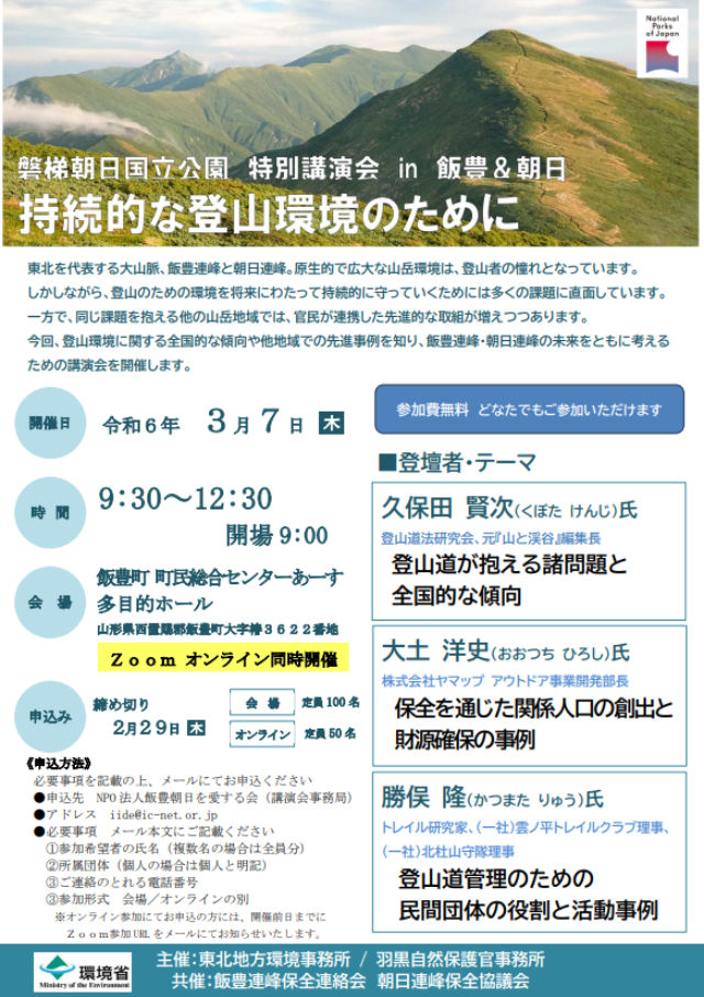 ・申込問合先 NPO法人飯豊朝日を愛する会事務局 iide@ic-net.or.jp