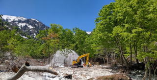 ・ダイグラ尾根取り付き桧山沢吊り橋の撤去に業者が向かった。