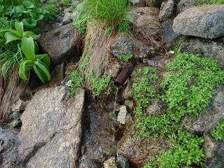 ・ 御西小屋の水場が露出しました また御西小屋にミネラルウォーターを上げましたのでお譲りできます・・・2024年7月14日