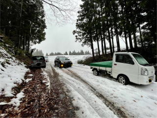 南俣集落から神社へ向かう林道は、橋を渡ってすぐ先の棚田が始まる地点で15-20cmの積雪。その先は登りということもあって4WD車でも走行できません。集落先の冬期駐車スペースに駐車するのが無難です。・・・2024年12月14日清田さんから