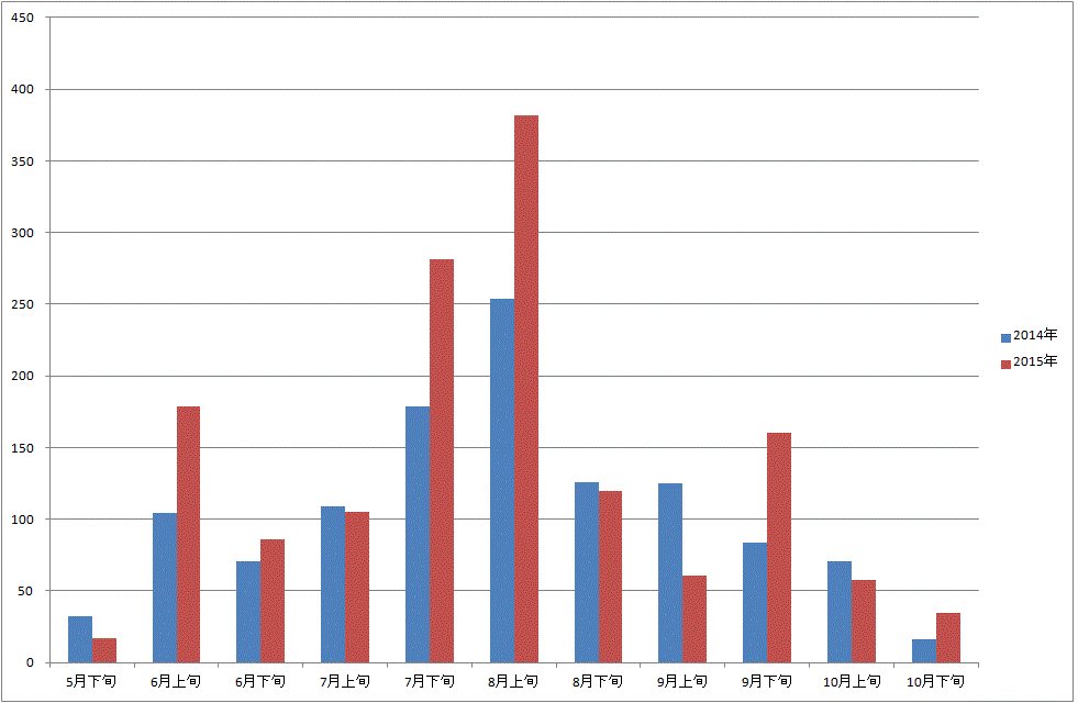| 8月上旬 | 254 | 382 | 150% | 24 | 6% |